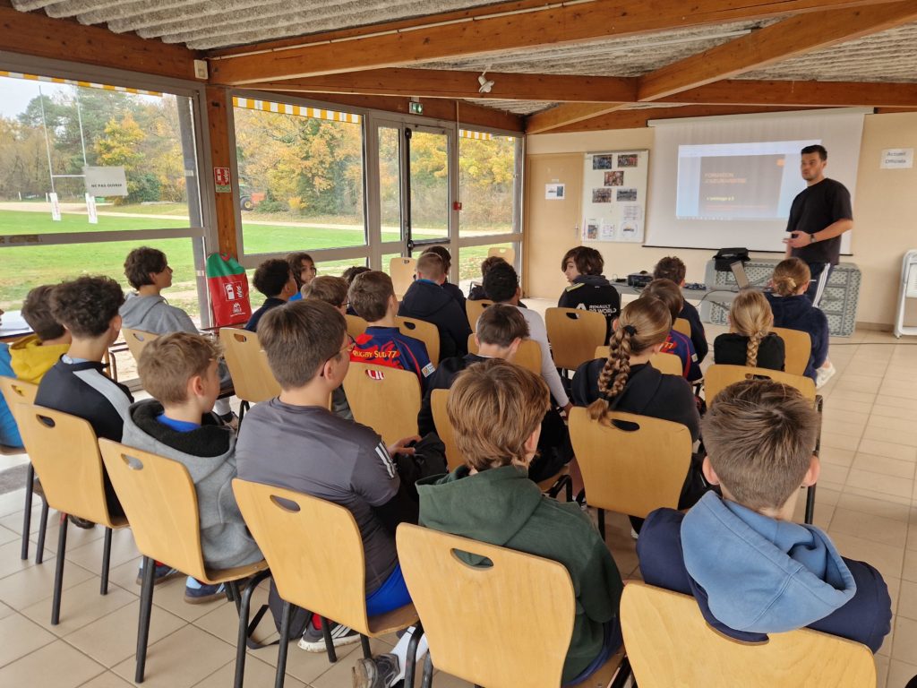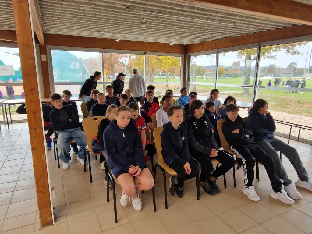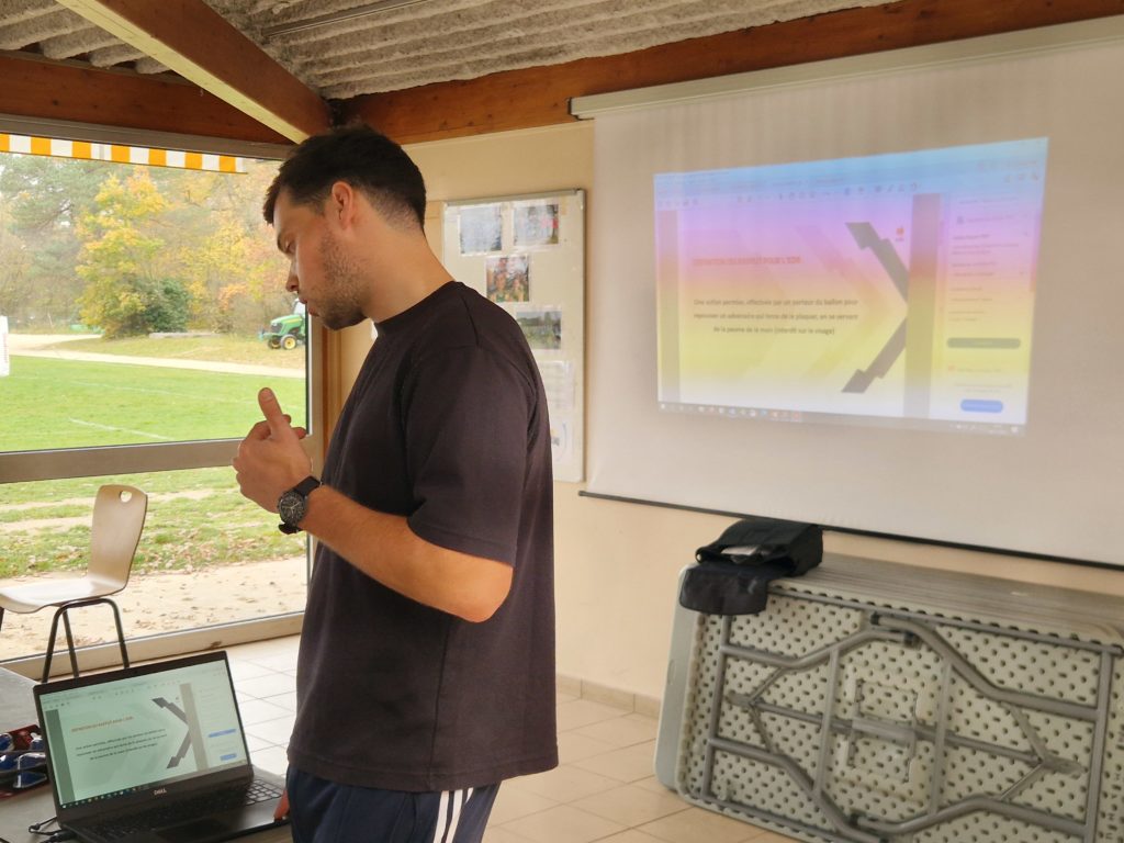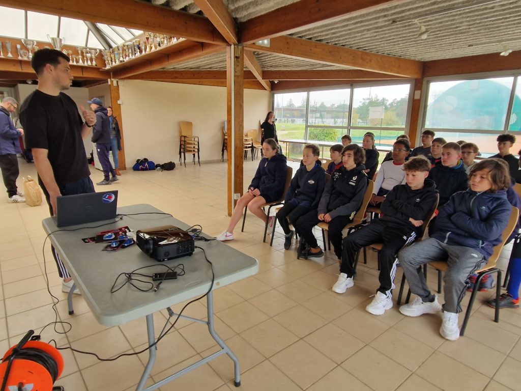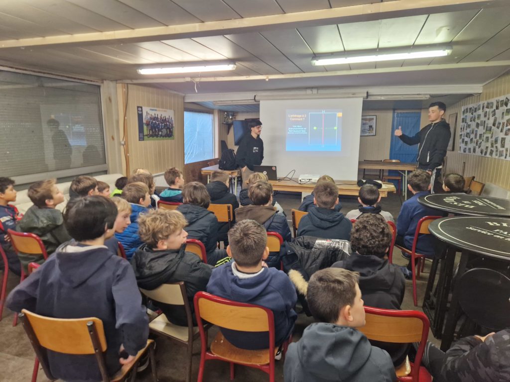 1. une demi journée où nos deux arbitres club Jean et Edward, durant laquelle ils animent avec compétence, bienveillance et dynamisme des ateliers de sensibilisation aux règles (ASR) auprès de tous nos jeunes M12 et M14. Une heure de théorie, vidéos, rappels et échanges sur les règles, etc. Puis des animations terrain où tout le monde s’essaie au sifflet. Conclusion : pas évitant !!!