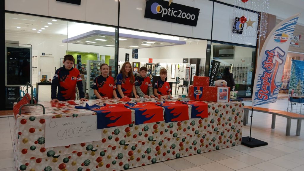 Comme chaque année, motivation et ambition sont très présentes chez nos minimes. Mais notre projet EDR ne reste pas sur les terrains ! L’objectif des tournois de fin d’année, notamment celui d’aller défendre notre titre au trophée Henri Abeille à Château-Renard acquis de haute lutte en mai dernier face aux grosses écuries du Sud Est – Montpellier, Marseille, etc. – mobilise notre jeune troupe depuis le début de saison : gestion du stand miam miam lors des matchs séniors à domicile, emballage des cadeaux de Noël, etc. Cette main-à-la-patte vise à aller chercher le financement de leurs tournois lointains. Et là, si certains des joueurs ont parfois du mal à suivre l’évolution des scores des matchs, ils ne rigolent plus quand ils sont à la caisse !!! En prime, cet engagement est aussi un excellent moteur de mixité et de cohésion du club. Et les parents sont tout aussi impliqués ! Bref, le top 🙂