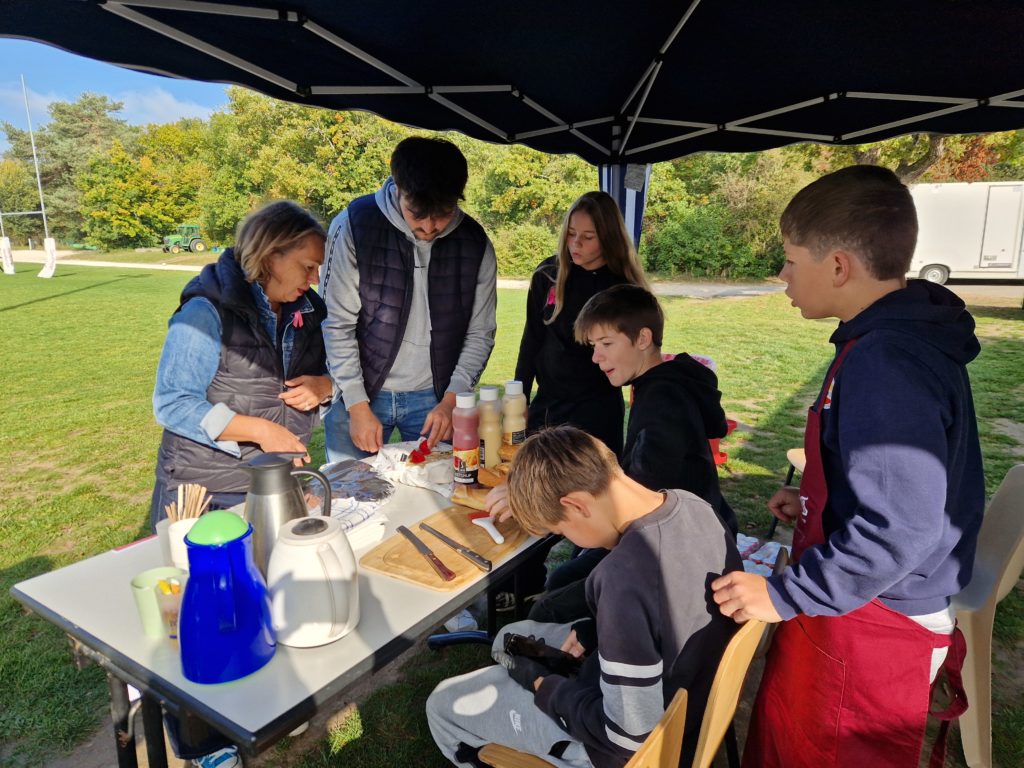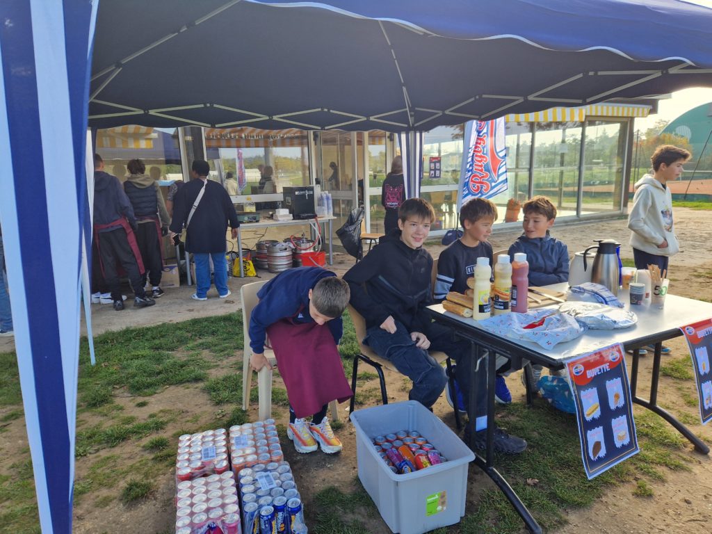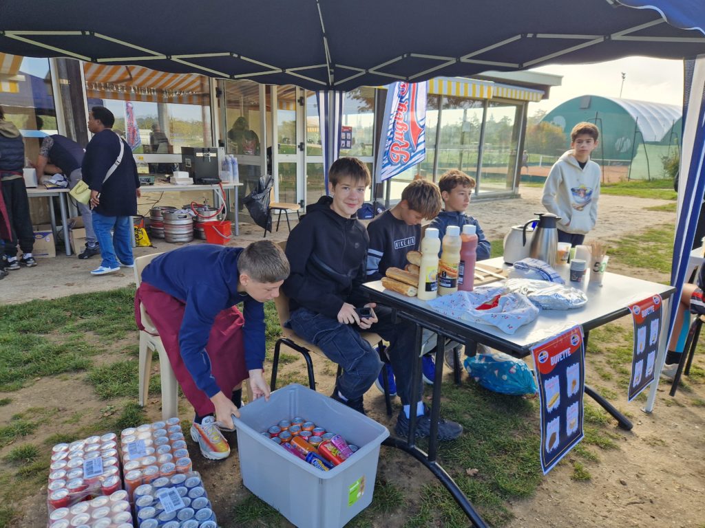 Comme chaque année, motivation et ambition sont très présentes chez nos minimes. Mais notre projet EDR ne reste pas sur les terrains ! L’objectif des tournois de fin d’année, notamment celui d’aller défendre notre titre au trophée Henri Abeille à Château-Renard acquis de haute lutte en mai dernier face aux grosses écuries du Sud Est – Montpellier, Marseille, etc. – mobilise notre jeune troupe depuis le début de saison : gestion du stand miam miam lors des matchs séniors à domicile, emballage des cadeaux de Noël, etc. Cette main-à-la-patte vise à aller chercher le financement de leurs tournois lointains. Et là, si certains des joueurs ont parfois du mal à suivre l’évolution des scores des matchs, ils ne rigolent plus quand ils sont à la caisse !!! En prime, cet engagement est aussi un excellent moteur de mixité et de cohésion du club. Et les parents sont tout aussi impliqués ! Bref, le top 🙂